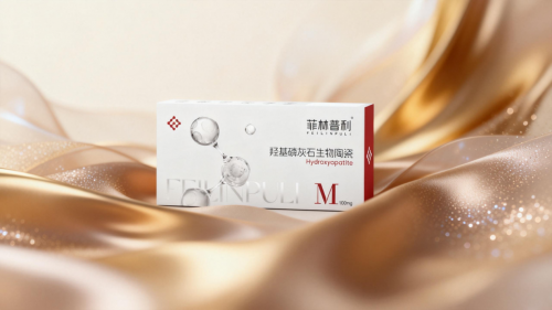菲林普利M型的独特之处,在于它实现了“即时填充”与“长效再生”的结合。其中等尺寸的微球能够提供优异的即时塑形效果,有效抚平鼻唇沟,支撑起凹陷的苹果肌和太阳穴,迅速重塑面部流畅饱满的年轻轮廓。然而,这只是故事的序章。其核心成分羟基磷灰石(CaHA),作为人体同源的无机成分,拥有极佳的生物相容性。它在体内扮演着“生物支架”的角色,持续刺激自体胶原蛋白围绕其新生。